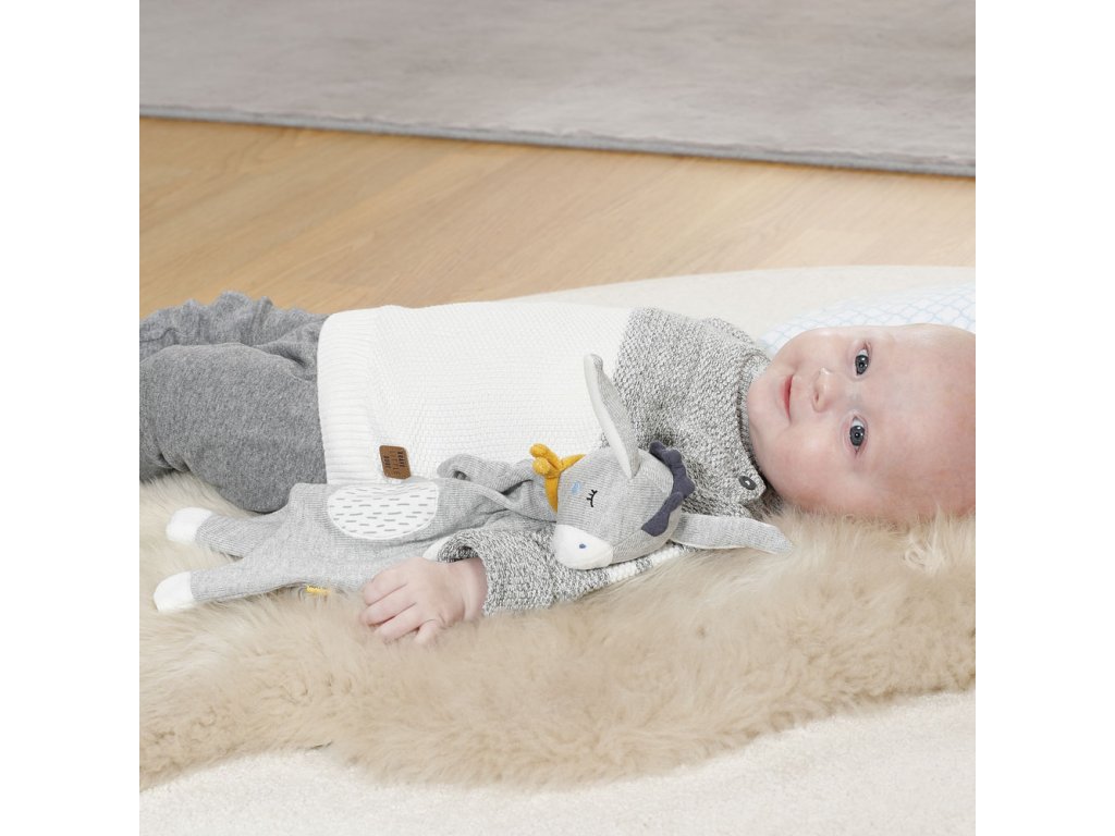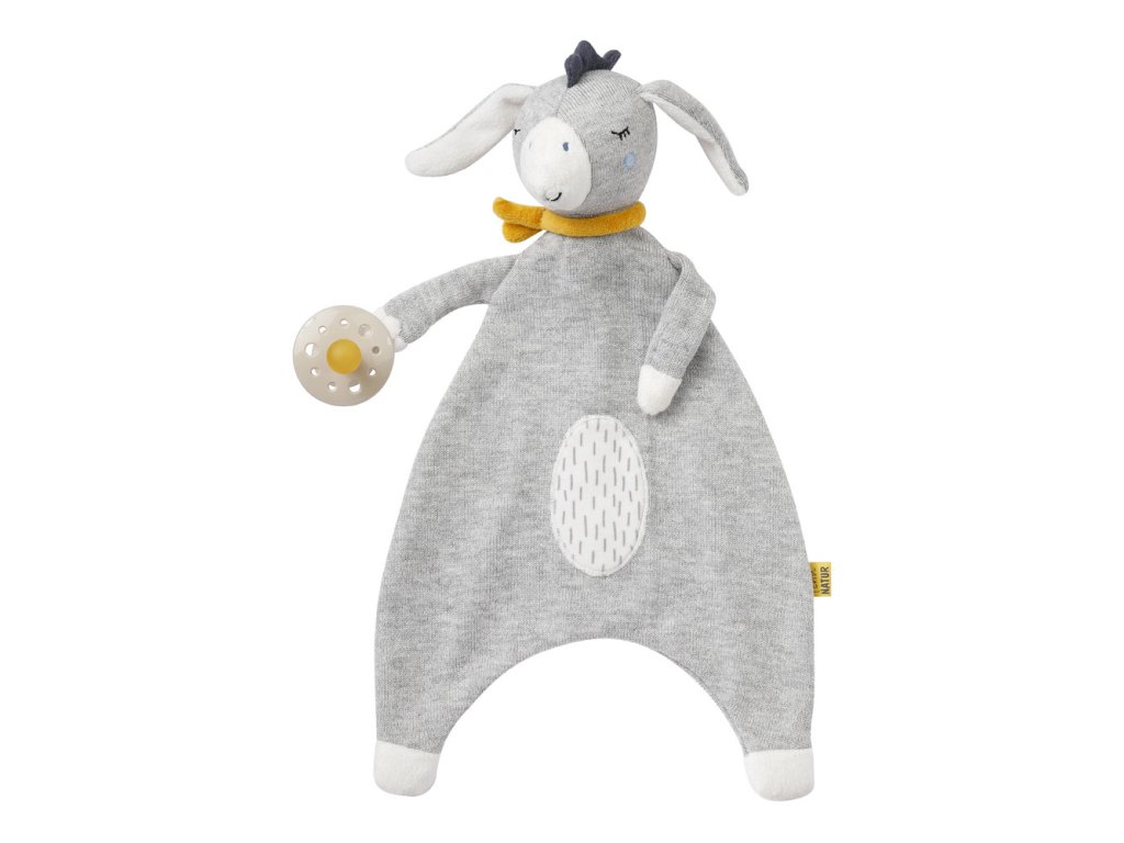 Mäkký plyšový oslík vykúzli úsmev na tvári každého bábätka a rýchlo sa stane najlepším kamarátom. Cez deň slúži ako roztomilá hračka, v noci pomáha deťom zaspať. Vďaka praktickému krúžku je možné na muchláčika pripevniť cumlík, ktorý sa tak nestratí či už doma alebo na cestách.