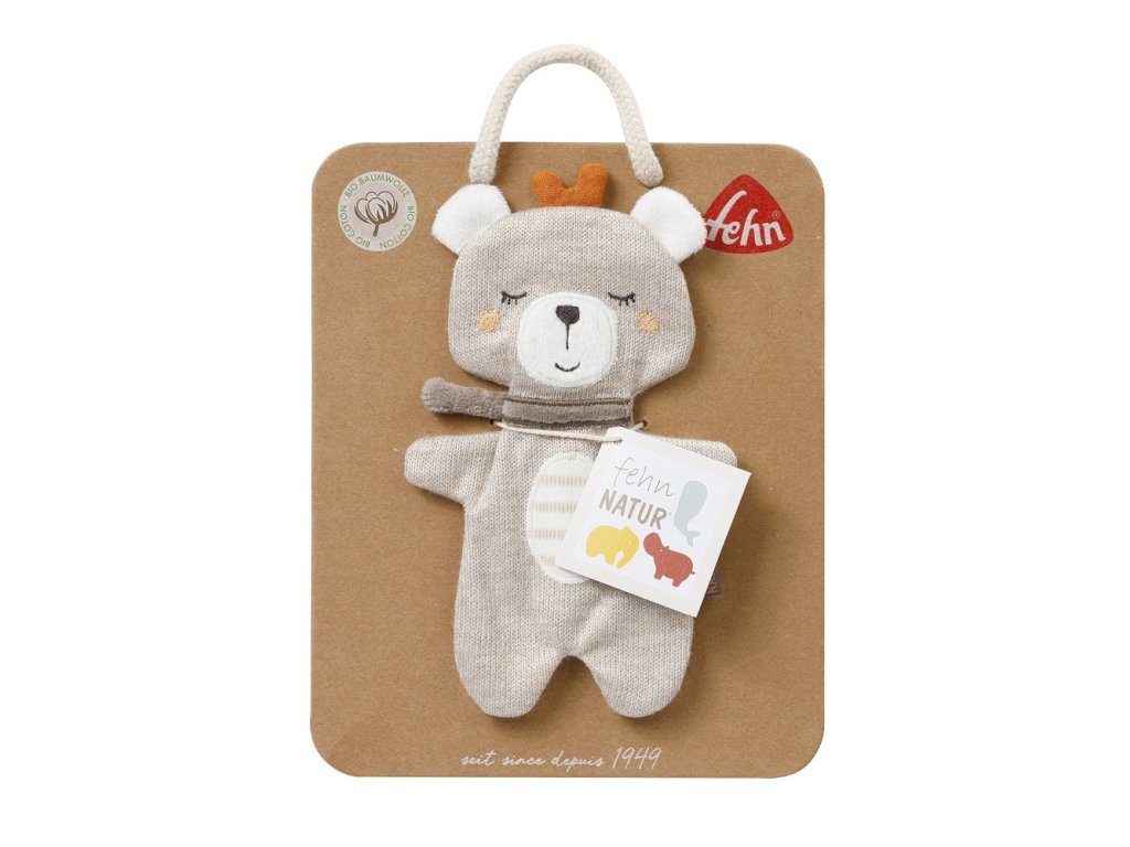 Pletené telo medvedíka je vyrobené z organickej bavlny a vo vnútri sa nachádza šuštiaci papier, ktorý pri stláčaní vydáva zvuk. Uchopovacia hračka tak hravou formou podporuje sluch, úchop a hmat a jemnú motoriku bábätka. Praktická veľkosť umožňuje vziať oslíka všade so sebou.