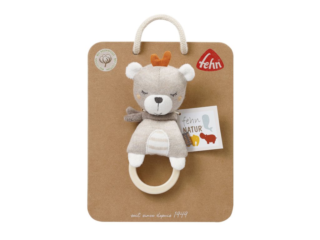 Baby Fehn Plyšový medvídek s dřevěným držákem, FehnNatur 2.0