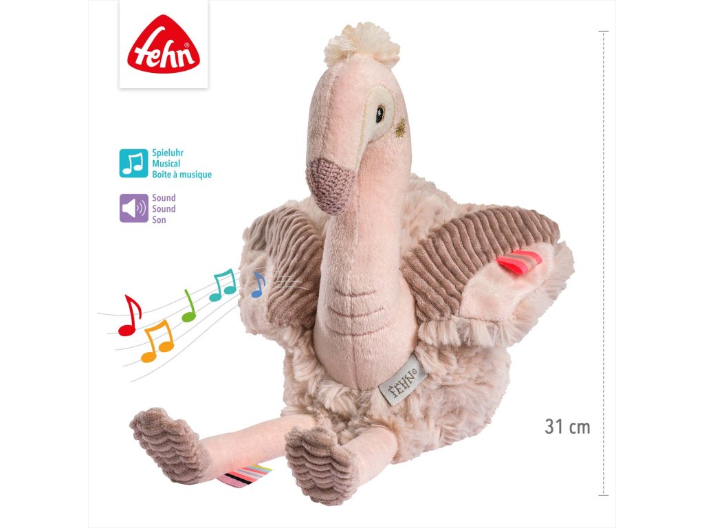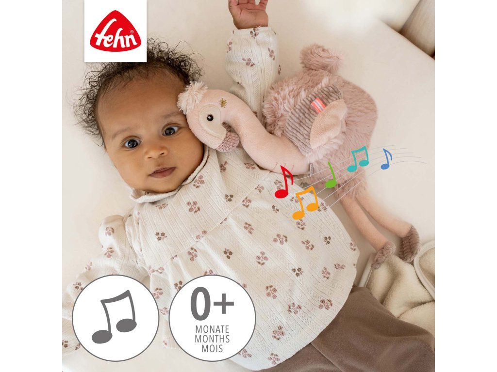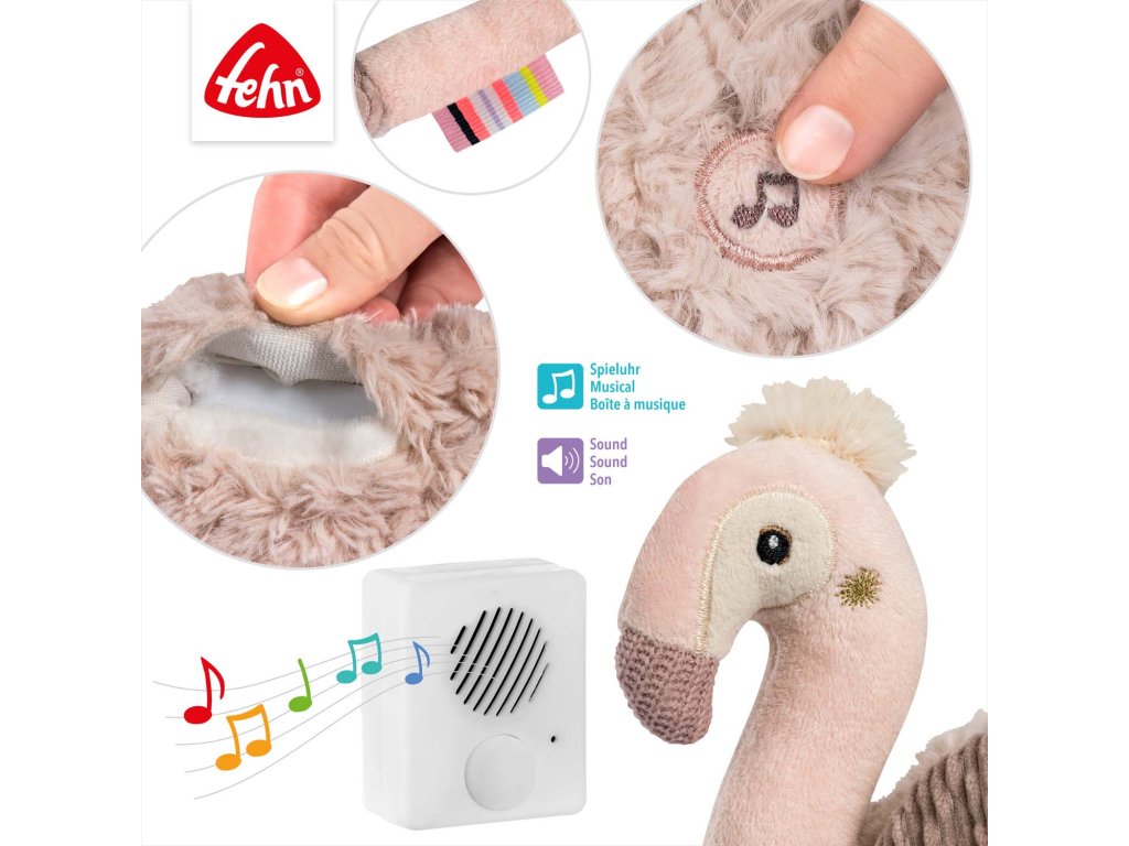 Mäkký plyšový plameniak z kolekcie Lazy, Crazy & Pink je ideálnym pomocníkom pri zaspávaní, ochrancom a kamarátom na maznanie na noc. Plyšová hračka so zvukovým modulom a integrovaným senzorom plaču pomáha upokojiť bábätká, vytvára známe prostredie a navodzuje pocit bezpečia. Modul prehráva 5 rôznych zvukov prírody a 5 melódií hudobnej skrinky.