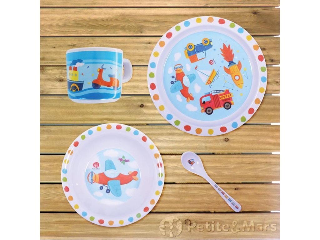 Malí chlapci milujú autíčka aj lietadielka. Taniere, mištičky, poháriky aj lyžičky s takými ilustráciami sú preto úžasnou motiváciou, ako jedlo poslušne spapať.