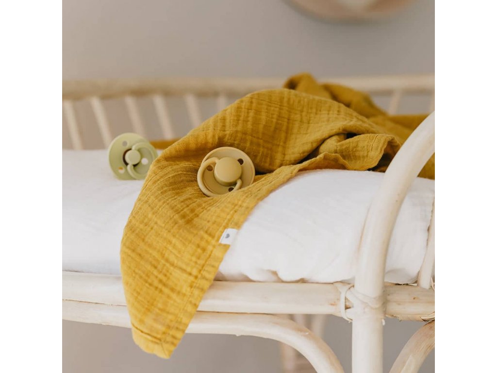 BIBS je obľúbená dánska detská značka s viac ako 40 ročnou tradíciou, pre ktorú je typický minimalistický škandinávsky dizajn a široká farebná paleta. Okrem ikonických cumlíkov BIBS ponúka aj pestrý prémiový sortiment pre najmenšie deti. Zavinovačky sú jednou zo základných vecí každej detskej výbavičky. BIBS zavinovačky sú vyrobené z nariaseného mušelínu zo 100%25 organickej bavlny s certifikátom GOTS. Sú predprané a preto výnimočne mäkké, priedušné a ľahučké, každým praním sa ešte viac zjemňujú. Mušelín je najhebkejšia bavlnená látka, mimoriadne príjemná na kontakt s jemnou detskou pokožkou. Detská zavinovačka je ideálnym pomocníkom pri zavinutí, dojčení a spánku bábätka už od prvého dňa. Pri zavinutí sú bábätká akoby v pevnom objatí a cítia sa v bezpečí. Zavinutie do zavinovačky predlžuje spánok bábätka, blokuje u novorodencov tzv. Moorov reflex (náhle rozhodenie ručičkami) a následné zobudenie zo spánku. BIBS zavinovačky majú navyše unikátne zväčšené vešiakové pútko. Vďaka vlastnostiam mušelínu a praktickému pútku zavinovačku ľahko premeníte na užitočných pomocníkov: • podbradník • ľahká prikrývka na spanie • osuška pri kúpaní • podložka na spanie alebo prebaľovanie • plienka na odgrgnutie • zahalenie sa pri dojčení • maznáčik Zavinovačka nie je určená na nosenie detí, nenahrádza šatku na nosenie. Údržba: Pranie na 40°C v práčke, jemný program. Praním môže dôjsť k zmene veľkosti a tvaru plienok o cca 10%25. Nežehliť, nečistiť chemicky, nesušiť v sušičke. Čím viac sa mušelín perie, tým je mäkší a viac absorbuje vlhkosť. Používanie aviváže môže znižovať absorpčnú schopnosť. Zloženie: 100%25-ná organická BIO bavlna Balenie : 1 ks v praktickej mušelínovej taštičke Rozmery: 120 cm x 120 cm