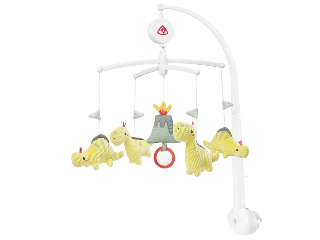 Kolotoč so štyrmi plyšovými dinosaurami a hracou sopkou nesmie chýbať pri postieľke žiadneho bábätka. Rytmický pohyb plyšákov pritiahne pozornosť dieťaťa a podnecuje jeho fantáziu. Hracia skrinka je schovaná do tela plyšovej sopky a pomocou naťahovacieho mechanizmu je možné pustiť melódiu Brahmsovej uspávanky s príjemnou hlasitosťou. Súčasťou kolotoča je pripevňovací mechanizmus, ktorý dovolí ľahké upevnenie k postieľke. Hračky je možné sňať a vyprať na jemný režim v práčke.