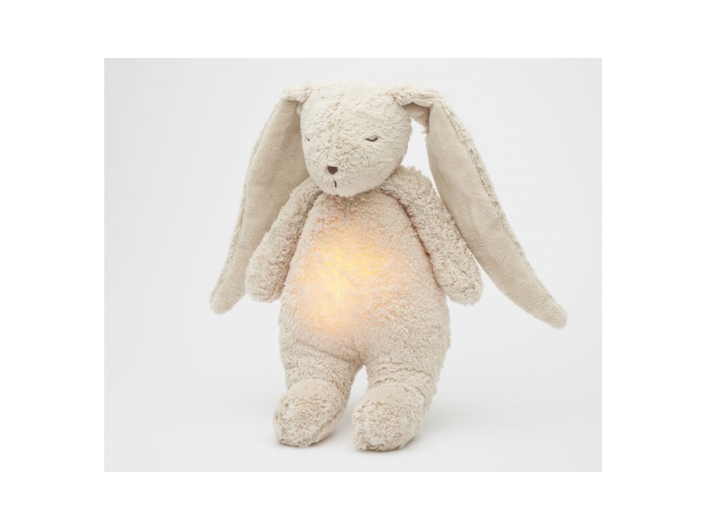 Bříško zajíčka svítí a slouží jako noční světlo s výběrem sedmi barev svícení. Jemné světlo pomáhá dítěti cítit se v postýlce bezpečně. Světlo je možné zapnout i bez zvuků. Při zapnuté funkci Shake světlo zapnete zatřesením hračkou. Zajíček se při svícení nijak nezahřívá a je pro dítě zcela bezpečný.