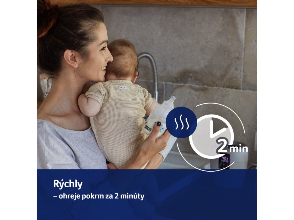 Rýchly - Ohreje pokrm už za 2 minúty, čo ho radí pred väčšinu ohrievačov dostupných na trhu. *80 ml mlieka/vody s pôvodnou teplotou 21°C