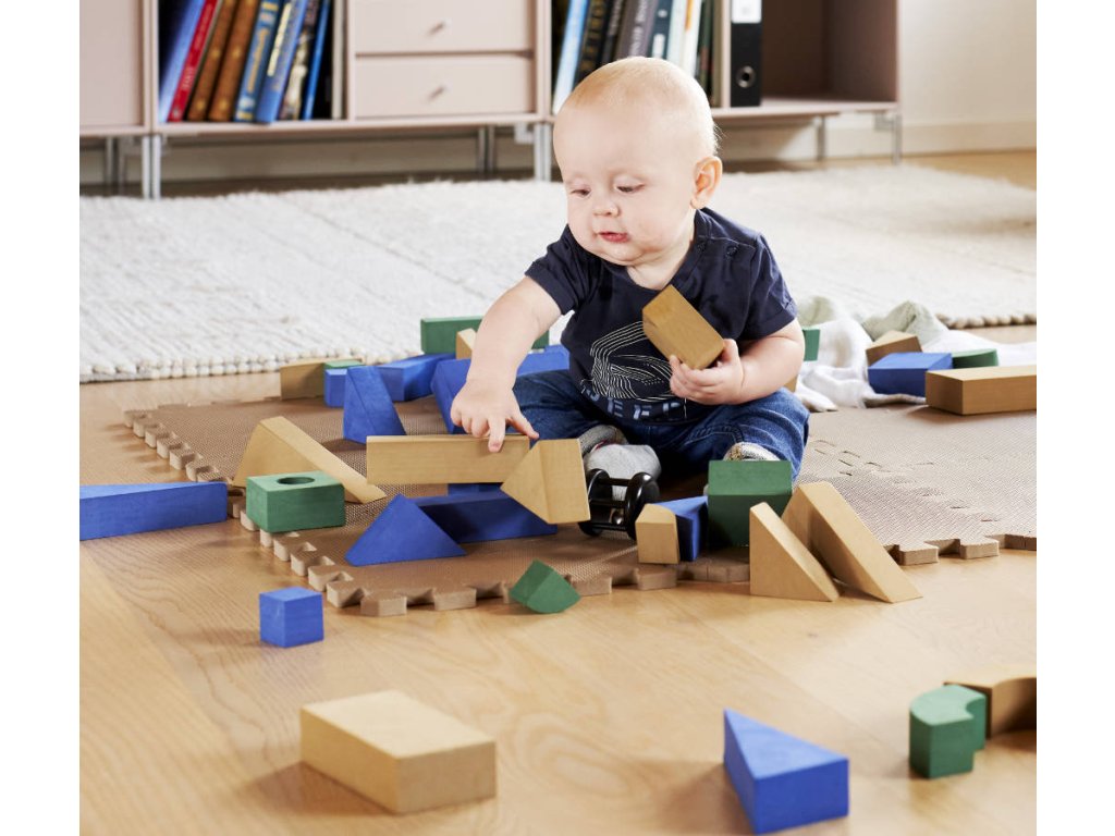 Penová podlaha je vyrobená z extra hustej peny hrúbky 1,4 cm, takže sa na nej deti môžu hrať a bezpečne spadnúť. Podložka izoluje plaziace alebo batoliace sa dieťa pred chladom, hlukom a nárazom. Veľmi vhodné umiestniť na dlažbu alebo plávajúcu podlahu. Podložka môže byť alternatívne zostavená tiež do štvorcovej krabice. Ak máte viac podložiek, môžete vytvoriť ďalšie krabice, ktoré dieťa môže skladať. Veľa možností pre aktívnu hru.