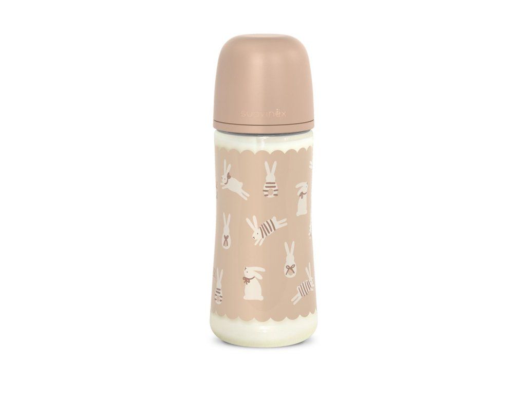 SUAVINEX | Dojčenská fľaša WONDERLAND NEW 360ml FYZIOL PRŮTOK L - krémový králik