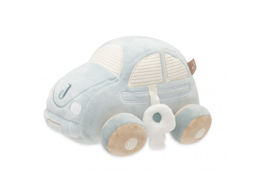 Měkké plyšové autíčko je díky svému provedení snadno uchopitelné malými dětskými ručičkami. Autíčko při pohybu jemně cinká, klíček šustí. Zvuky i různorodé textury lákají dítě ke zkoumání,
