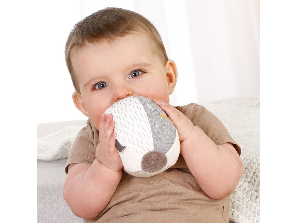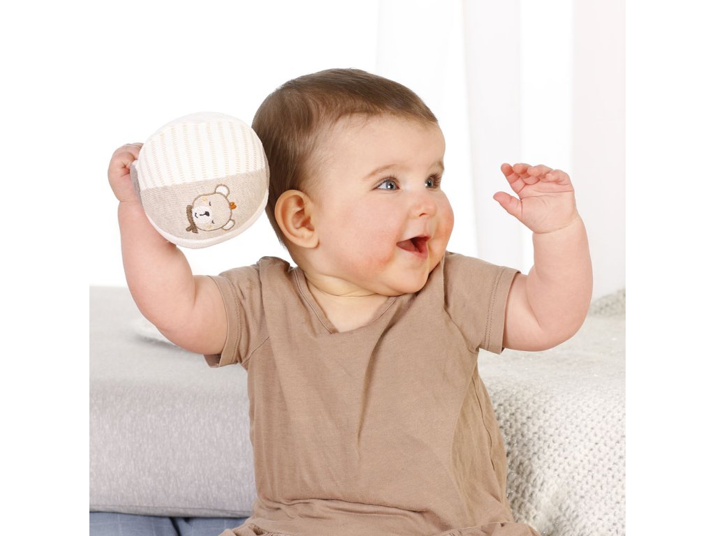 Mäkká loptička je vyrobená zo stopercentnej organickej bavlny. Ľahko sa uchopuje a podporuje prirodzenú zvedavosť bábätka. Pomáha rozvíjať jemnú motoriku, koordináciu, fantáziu a zručnosť. Vďaka praktickej veľkosti ho možno ľahko vziať kamkoľvek so sebou.