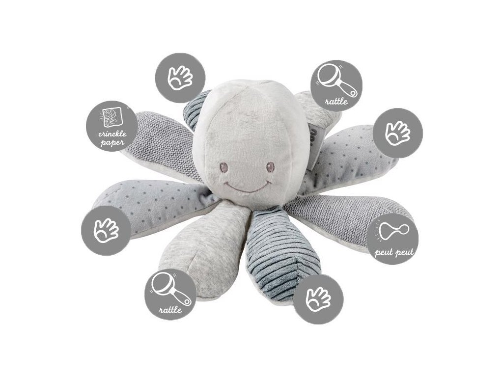 NATTOU Hračka chobotnička edukačná 8 aktivít Lapidou grey