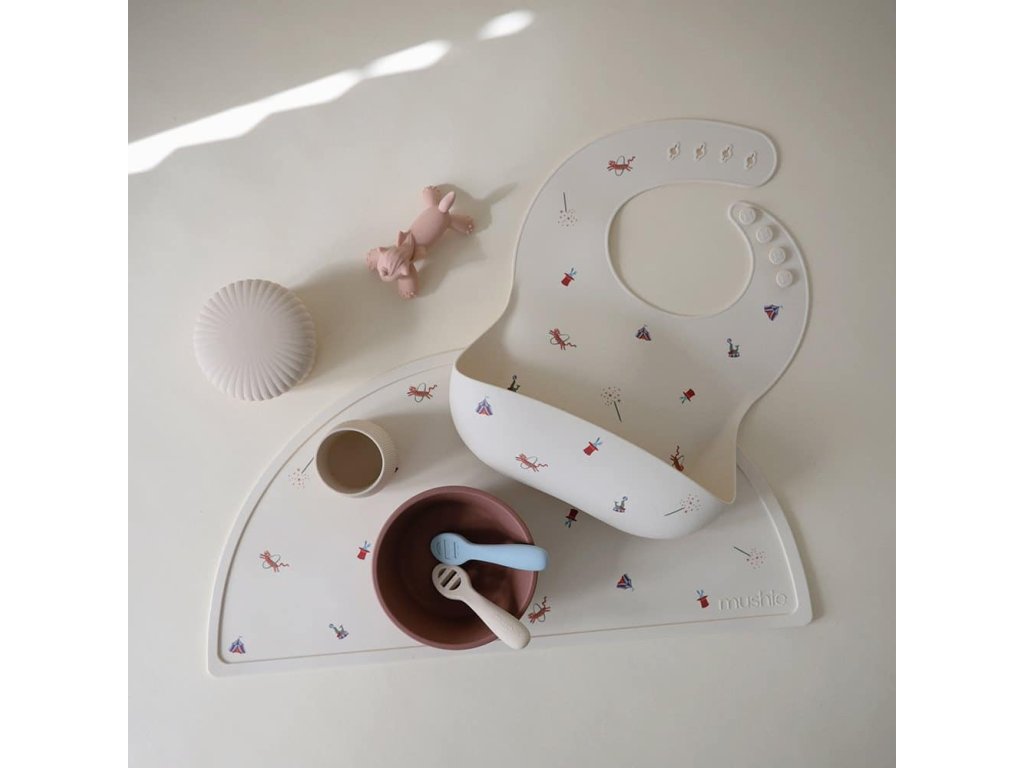 Urobte z jedenia čistý a zábavný zážitok s podbradníkom od Mushie!