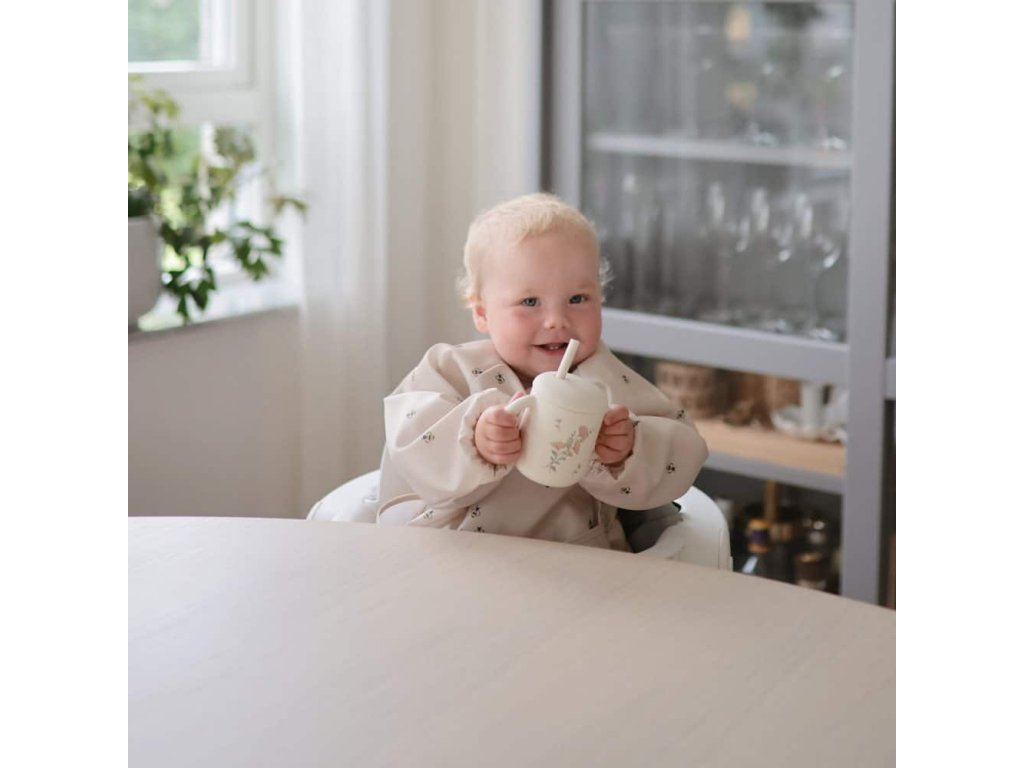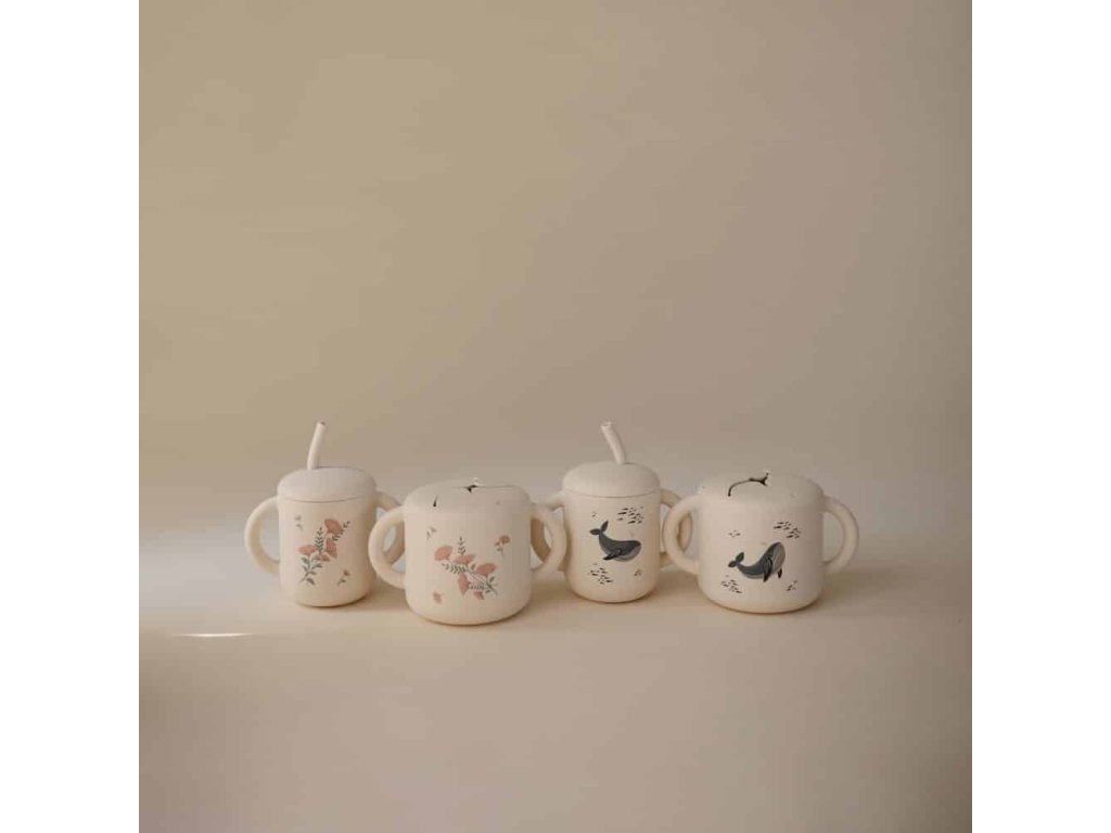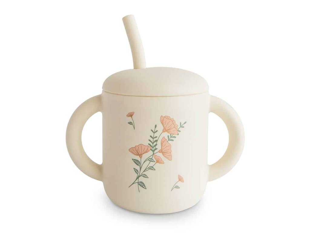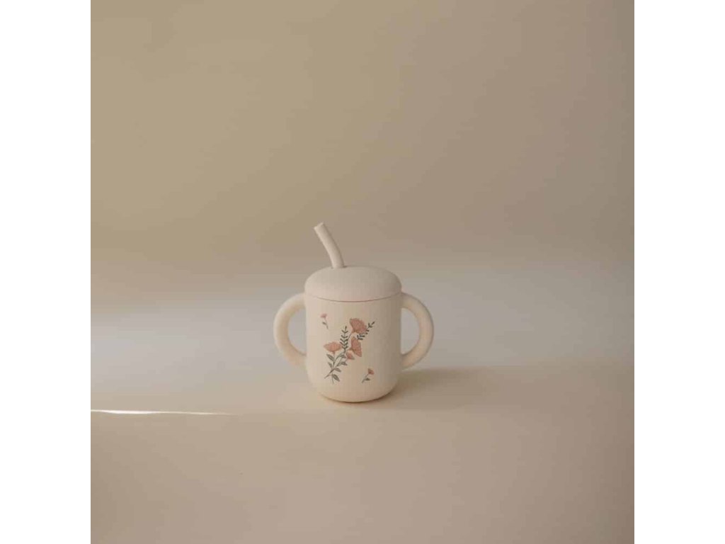 SILIKÓNOVÝ POHÁRIK SO SLAMKOU MUSHIE - PINK FLOWERS