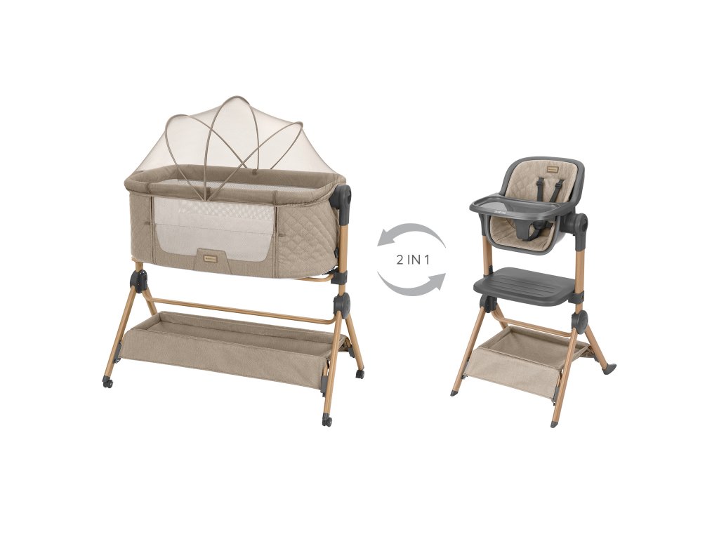 - Funkce co-sleeping – postýlku lze bezpečně připevnit k posteli rodičů
