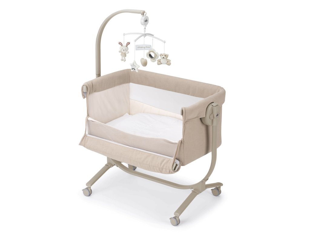 Vďaka odnímateľnej bočnici a možnosti posunúť celé lôžko na ráme do strany (až 16cm) ju možno ľahko umiestniť tesne vedľa vašej postele. Pre jednoduchú manipuláciu po byte je vybavená kolieskami. Cullami postieľku možno nastaviť do rôznych výšok i polohovať. Je ukotvená v kovovom ráme, postieľku lze zaistiť napevno alebo používať ako kolísku.