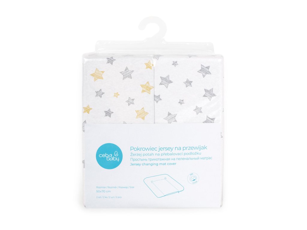 CEBA Poťah na mäkkú prebaľovaciu podložku (50x70) 2 ks Grey Stars+Yellow Stars
