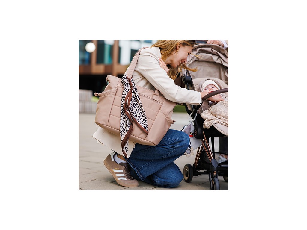 Prebaľovacia taška na kočík CAMI bola vytvorená pre aktívne mamičky, ktoré si cenia pohodlie, štýl a funkčnosť. Kombinuje športový design s elegantným šmrncom. Módna šatka so zvieracou potlačou dodá vášmu outfitu charakter a okorenie ho.