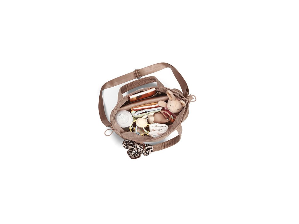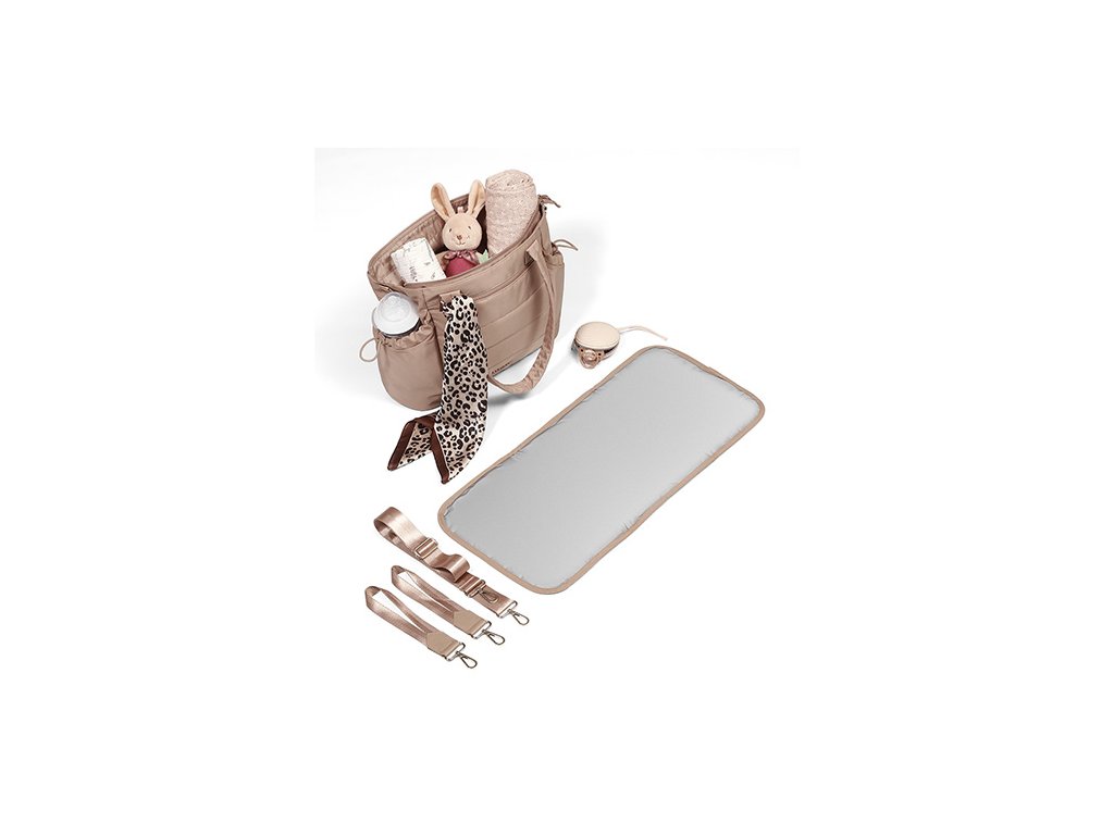 Je veľká a priestranná, ideálna na nosenie bábätka aj dieťaťa. Má 10 vreciek, pútko na kľúče a prebaľovaciu podložku, čo vám umožní múdro usporiadať interiér. Je vyrobená z nepremokavého materiálu, venovali sme pozornosť detailom. Môžete ju zavesiť na kočík, nosiť v ruke alebo ju nosiť cez rameno.