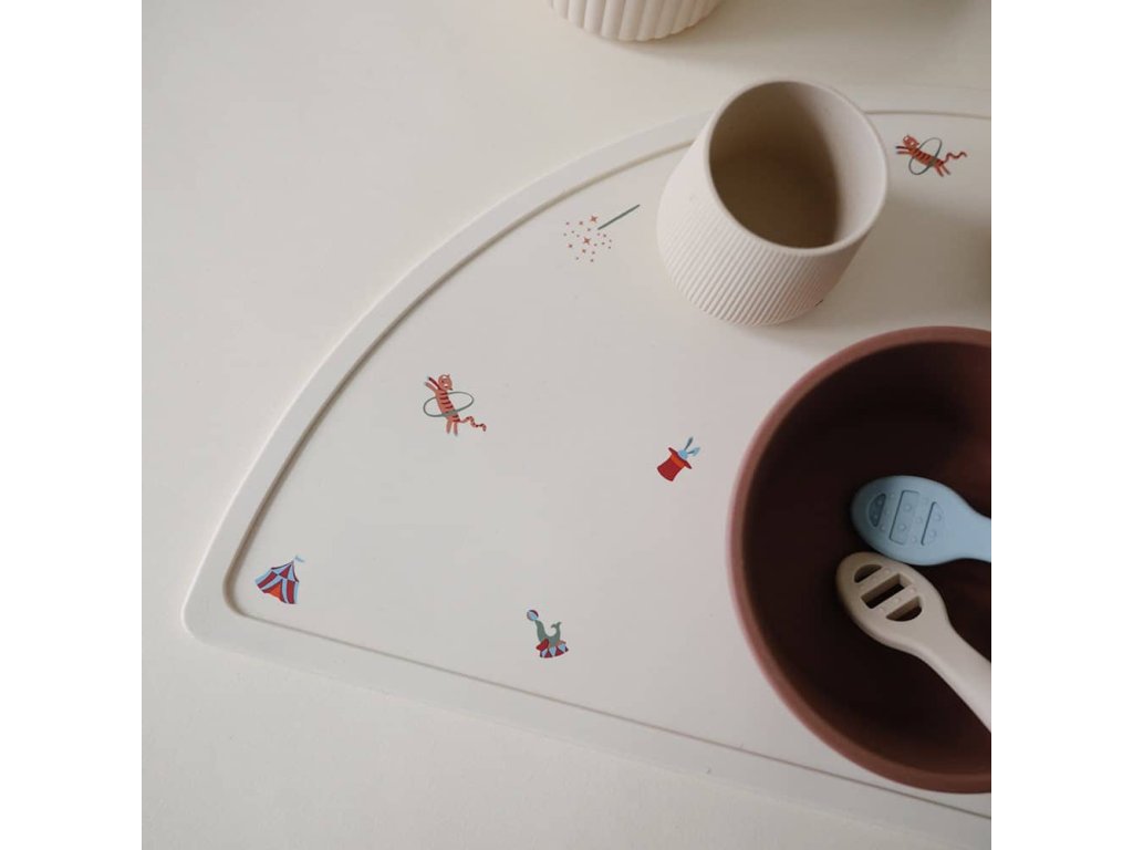 Silikónové prestieranie pre zachytenie nečistôt počas stolovania.
