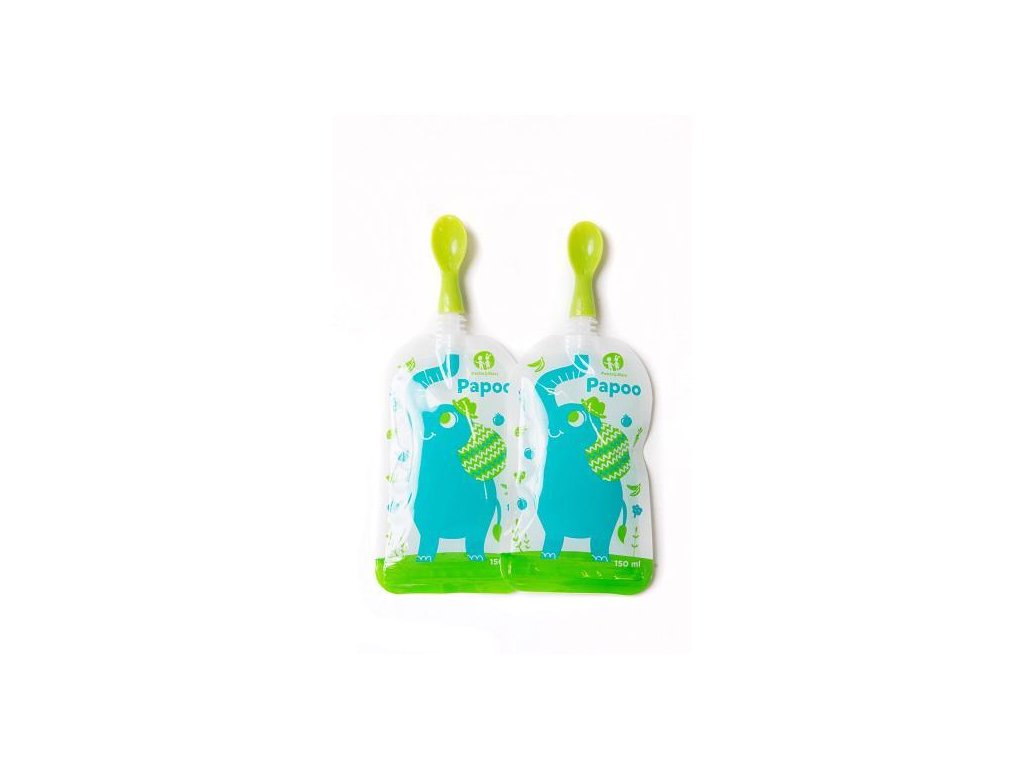 PETITE&MARS Lyžička ku kapsičke Papoo 2 ks zelená