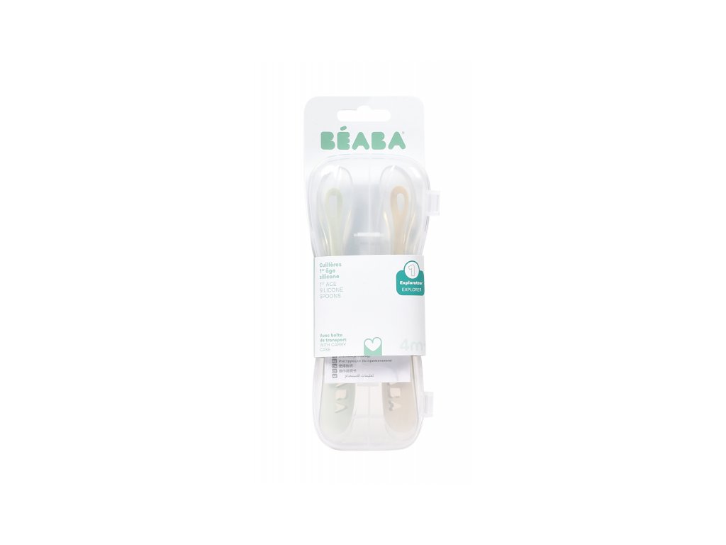 Silikónové lyžičky Beaba pre najmenších sú šetrné k citlivým detským ďasnám a navrhnuté pre hladký prechod z cumlíka na lyžičku. Dlhá rukoväť uľahčuje rodičovi naberanie z misky aj pohára bez zašpinenia rúk. Praktické puzdro umožňuje hygienické prenášanie lyžičiek napr. v prebaľovacej taške.