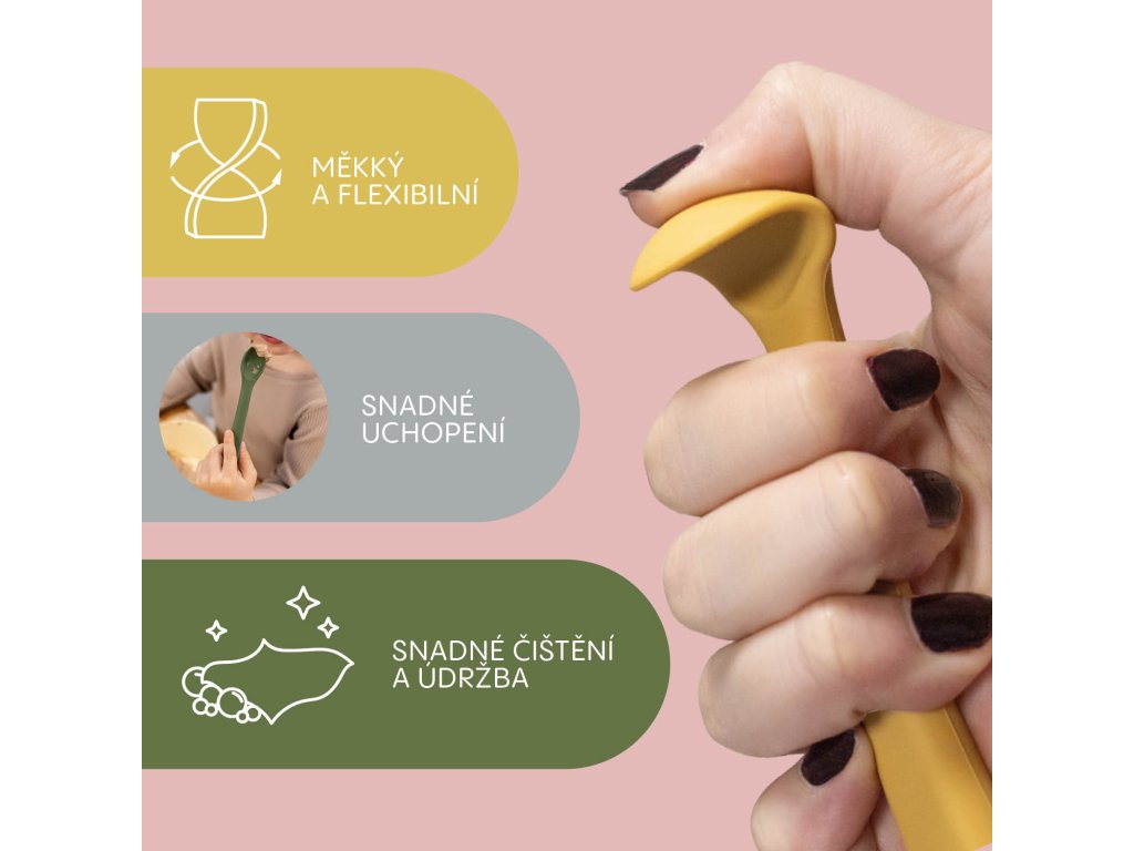 Doprajte svojmu dieťatku komfortné a bezpečné kŕmenie s našou mäkkou silikónovou lyžičkou, ktorá je špeciálne navrhnutá pre citlivé detské ďasná a prvé zúbky. Ideálna voľba pre začiatky s príkrmami. Jej ergonomický tvar uľahčuje kŕmenie rodičom aj deťom pri prvých pokusoch o samostatné stravovanie.