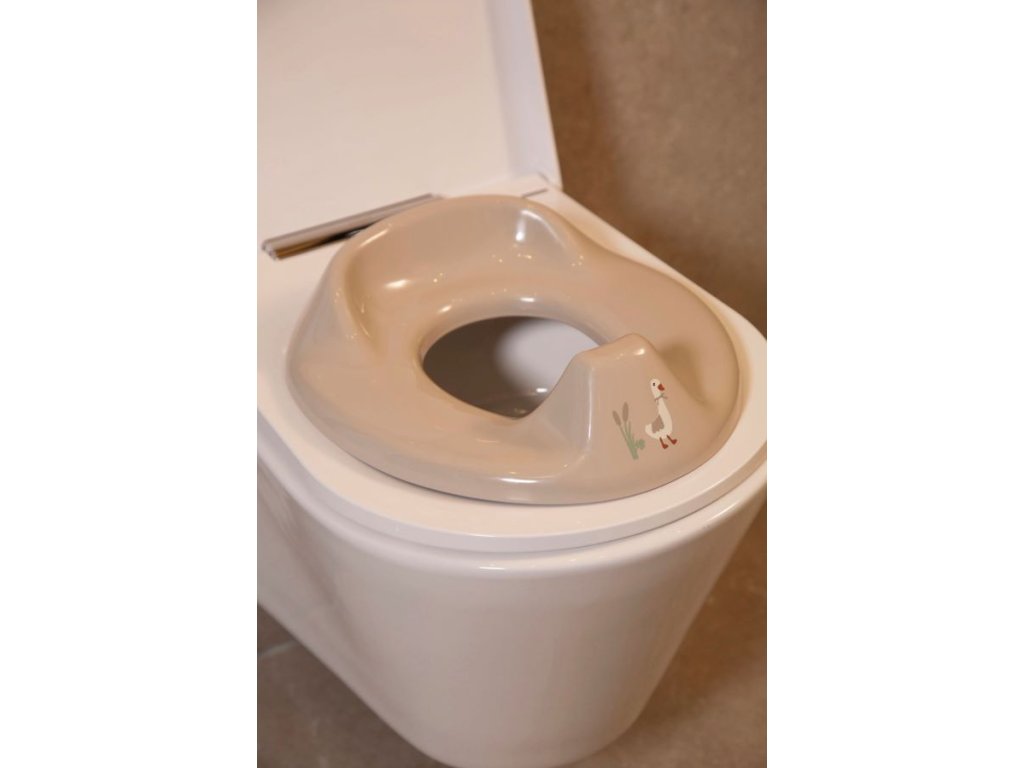 WC sedadlo spolu so stúpadlom približuje vášmu dieťaťu možnosť začať používať toaletu. Je určené pre deti od 18 mesiacov do 5 rokov. Maximálne zaťaženie je 30 kg. Je vybavené nastavovacím kolíkom, pomocou ktorého sedadlo prispôsobíte takmer každej toalete. Ochrana proti striekajúcej vode zabraňuje postriekaniu toalety.