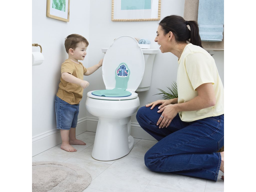 Uľahčite si nácvik na nočník s veselým kamarátom Stitchom! Redukcia na WC je praktické, hygienické a zábavné riešenie ako naučiť vaše dieťa chodiť na „veľký záchod“. Táto farebná redukcia sa jednoducho pripevní priamo na dosku WC – bez náradia a za pár sekúnd. Stačí odlepiť, prilepiť a používať! Navrhnutý tak, aby pasoval na väčšinu typov WC (okrúhle, predĺžené aj D-tvarované). Sedadlo sa jednoducho vyklopí, keď ho potrebujú dospelí, a tak neprekáža v bežnom používaní. Ideálny pre menšie kúpeľne – nezaberá miesto ako klasické nočníky a ľahko sa čistí.