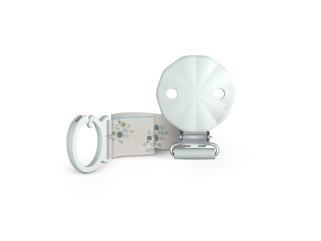 Klip, umožňuje upevniť cumlík na oblečenie dieťaťa a predchádza jeho prípadnému spadnutiu na nečistú zem alebo jeho strate.