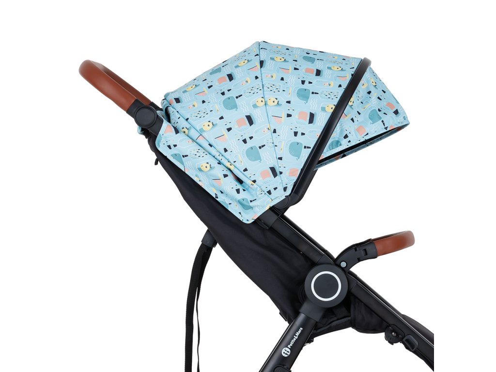 - Predĺžiteľná strieška so šiltom a maximálnym krytím.