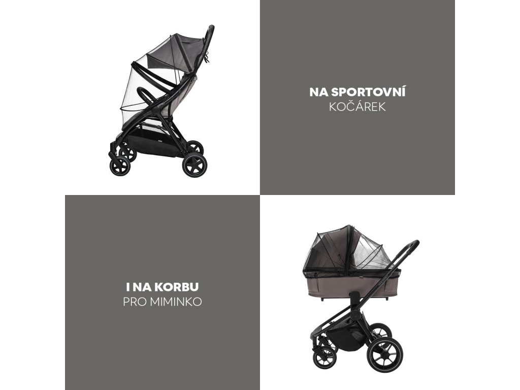 Spoľahlivá ochrana pred dažďom, vetrom a hmyzom – pasuje na športové sedenie aj hlbokú vaničku. Praktické predné okienko na zips umožňuje rýchly prístup k dieťaťu bez potreby zložiť celú pláštenku.