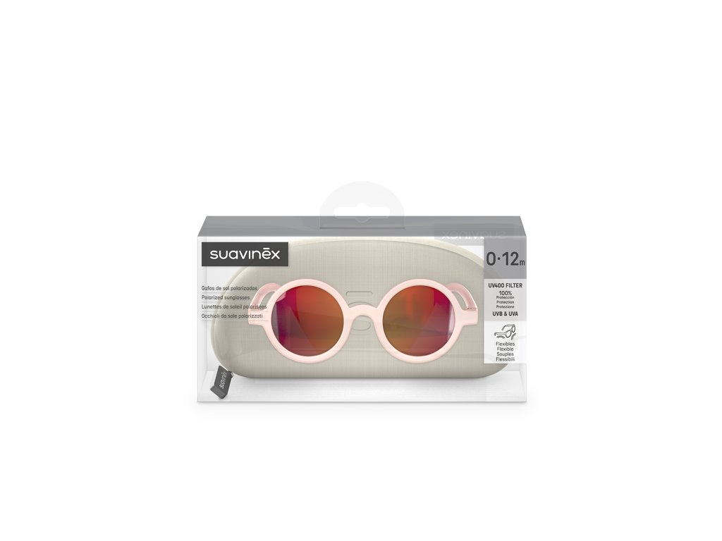 SUAVINEX | Detské okuliare polarizované s puzdrom 2024 - 0/12 mesiacov - ružové guľaté