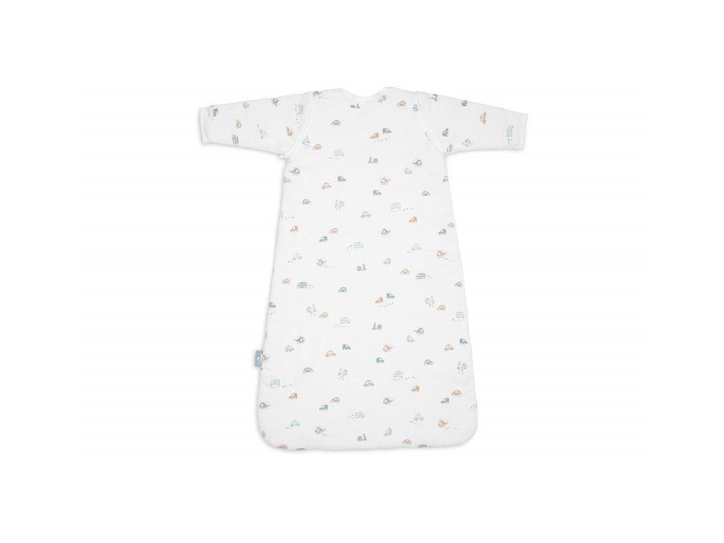 Praktický spací vak s oddeliteľnými rukávmi ponúka variabilitu pri použití podľa počasia a teploty v miestnosti. Vďaka jemnej výplni je vhodný na použitie namiesto perinky. Spací vak zaistí, že sa dieťa v noci neodkope a bude tak po celú dobu spánku v pohodlí a teple bez rizika prechladnutia. Kryté zipsy v prieramkoch umožňujú ľahké oddelenie rukávov, pokiaľ chcete spací vak používať v teplejšom prostredí bez rukávov. Zips na prednej strane umožňuje ľahké vloženie dieťaťa do spacieho vaku a prebaľovanie počas spania.