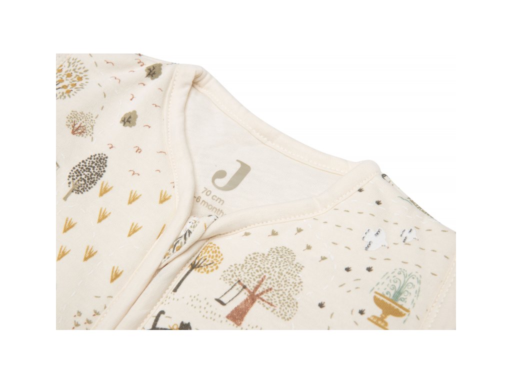 Praktický spací vak s oddeliteľnými rukávmi ponúka variabilitu pri použití podľa počasia a teploty v miestnosti. Vďaka jemnej výplni je vhodný na použitie namiesto perinky. Spací vak zaistí, že sa dieťa v noci neodkope a bude tak po celú dobu spánku v pohodlí a teple bez rizika prechladnutia. Kryté zipsy v prieramkoch umožňujú ľahké oddelenie rukávov, pokiaľ chcete spací vak používať v teplejšom prostredí bez rukávov. Zips na prednej strane umožňuje ľahké vloženie dieťaťa do spacieho vaku a prebaľovanie počas spania.