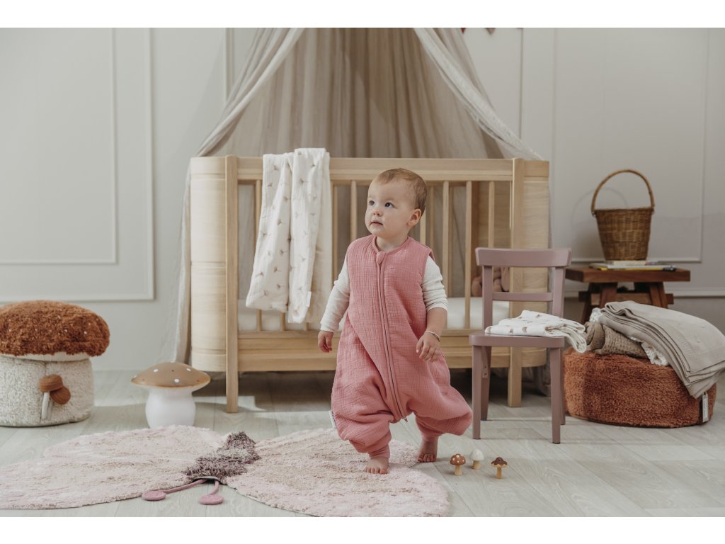 Pohodlný a prodyšný spací vak díky mušelínové tkanině s otvory pro nožičky. Vyroben z předeprané hydrofilní látky je vyroben ze 100% měkké bavlny a má výplň ze 100% polyesteru. Díky tomu je skvělý na jaro a podzim a na chladnější zimní dny a noci. Hydrofilní bavlna velmi dobře dýchá, výborně absorbuje vlhkost a velmi rychle schne. To udržuje prostředí pro spánek vašeho děťátka v dokonalé teplotě.