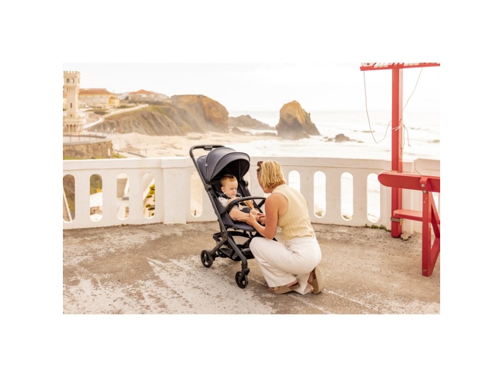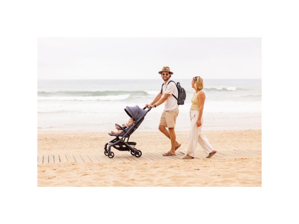 Rozťahovateľná strieška poskytuje ochranu pred slnkom UPF 50+ a obsahuje vetrací panel. Praktické zadné úložné vrecko a veľký košík s kapacitou 3 kg ponúkajú dostatok priestoru na všetko potrebné na cestách.