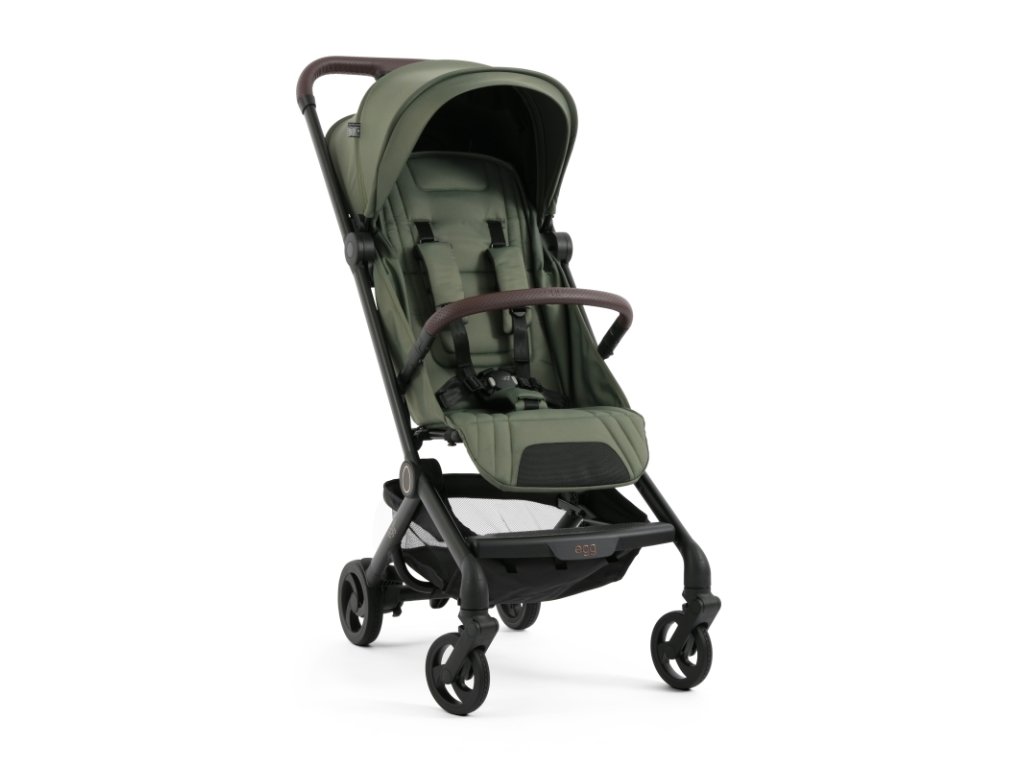 Typické prvky egg® nájdete na každom detaile – od elegantných kriviek a dezénu kolies až po ručne šitú koženkovú rukoväť (s výškou 105 cm) a odnímateľné madlo pred dieťaťom. Každý detail bol starostlivo premyslený pre potreby moderných rodičov, ktorí ocenia spojenie designu a funkčnosti.