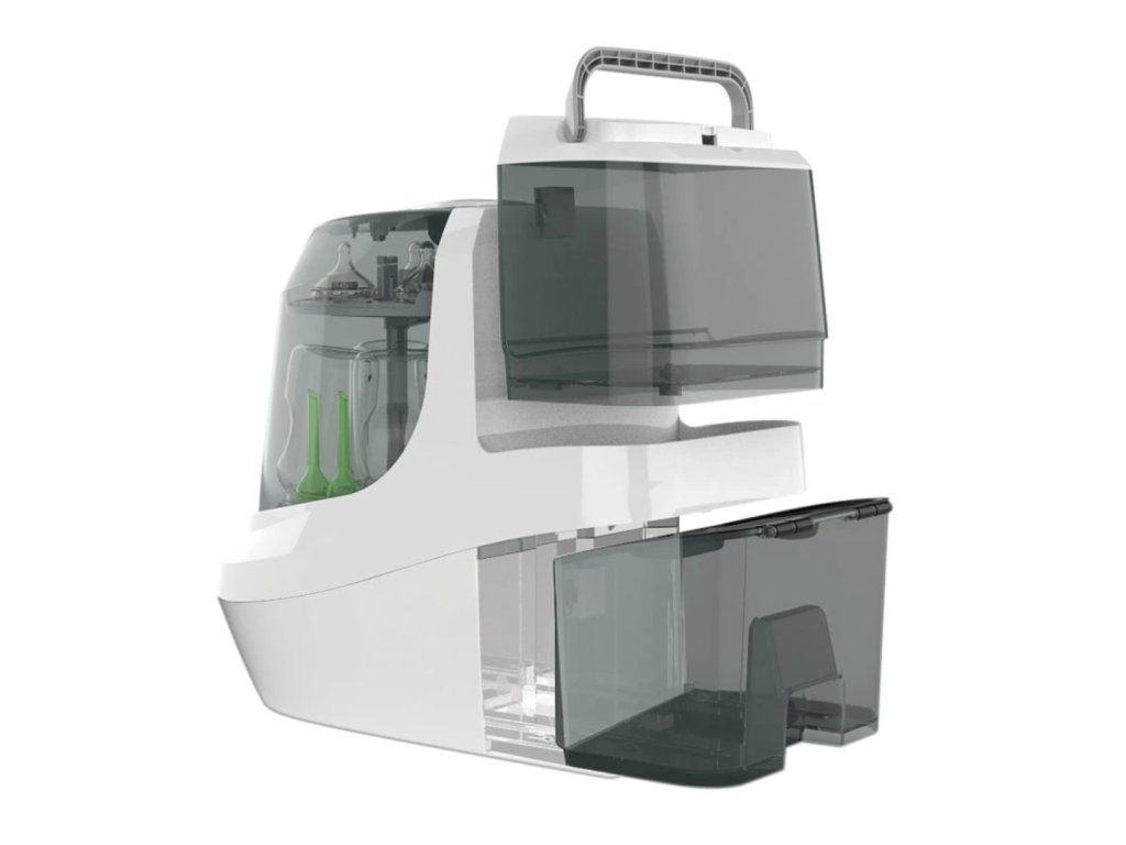 Všestranné čistenie: Automaticky umýva, sterilizuje a suší fľaše, časti odsávačiek, hrnčeky s náustkom a príslušenstvo zvnútra aj zvonku. Klinicky preukázané, že čistí výrazne lepšie než kefka na fľaše.
