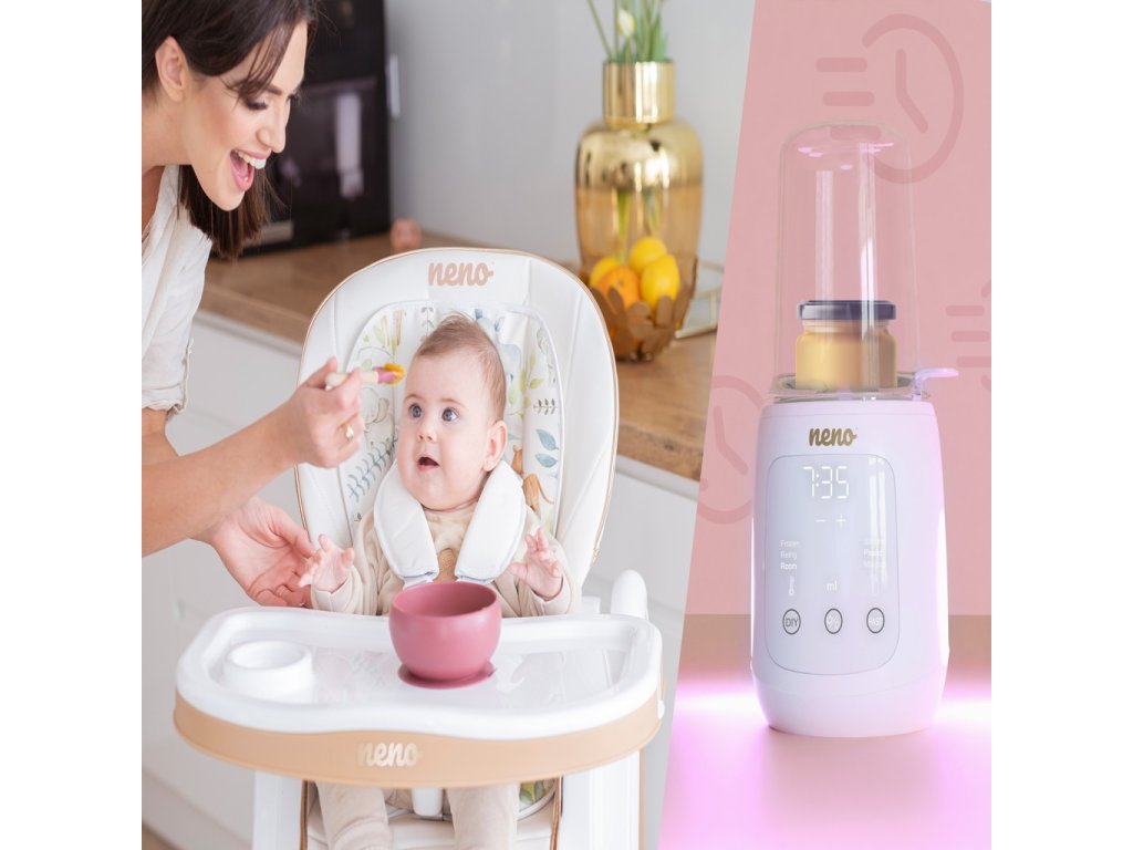 Multifunkčný ohrievač a sterilizátor s inteligentným systémom Smart Pro! Neno Tocco je praktické zariadenie 6v1 navrhnuté pre rodičov, ktorí chcú pripraviť jedlo pre bábätko rýchlo, bezpečne a bez stresu. Ohrievač ponúka viacero funkcií v jednom kompaktnom zariadení – od sterilizácie, cez rozmrazovanie, až po udržiavanie ideálnej teploty mlieka či príkrmov. Elegantný dizajn, dotykový panel a vstavané LED osvetlenie robia z Neno Tocco skvelého pomocníka aj štýlový doplnok každej domácnosti. Ideálne riešenie pre zaneprázdnených rodičov – aj ako darček na baby shower.