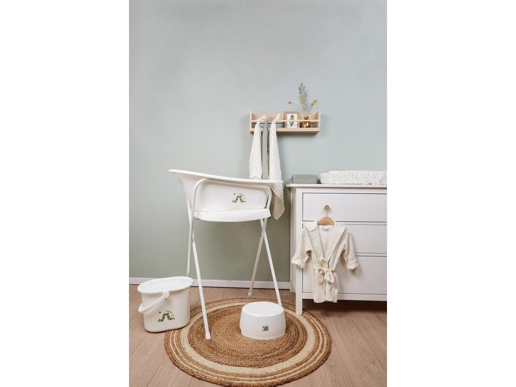 Kúpanie bábätka patrí k najobľúbenejším večerným rituálom. Ak máte stojan nemusí sa nutne odohrávať v kúpeľni. Niekedy sa pekne pretiahne a tak je dôležitá správna výška vaničky na správne držanie tela a tiež mať všetko na dosah a nemusieť od kúpaného dieťaťa odchádzať. Stojan Click od Bébé-jou je preto vybavený integrovaným držiakom uteráka alebo županu a miestom na položenie mydla alebo kúpacích gélov a šampónov. Nikdy nenechávajte dieťa pri kúpaní bez dozoru.