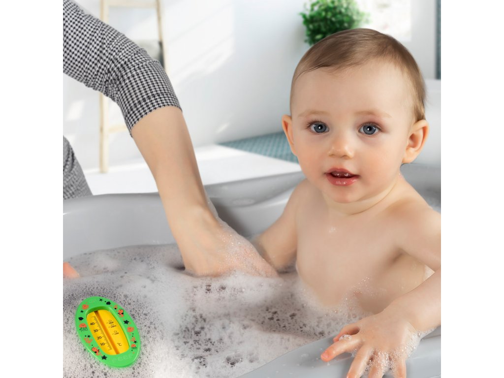 Teploměr má přehlednou stupnici, díky které lze okamžitě vyčíst teplotu vody. Pro ještě snadnější kontrolu jsou na stupnici vyznačeny symboly/emotikony, které ukazují, zda je voda příliš studená, horká, nebo má optimální teplotu. Rodiče tak mají jistotu na první pohled.