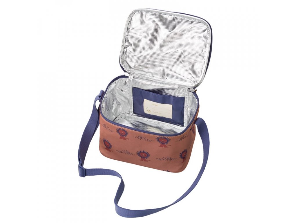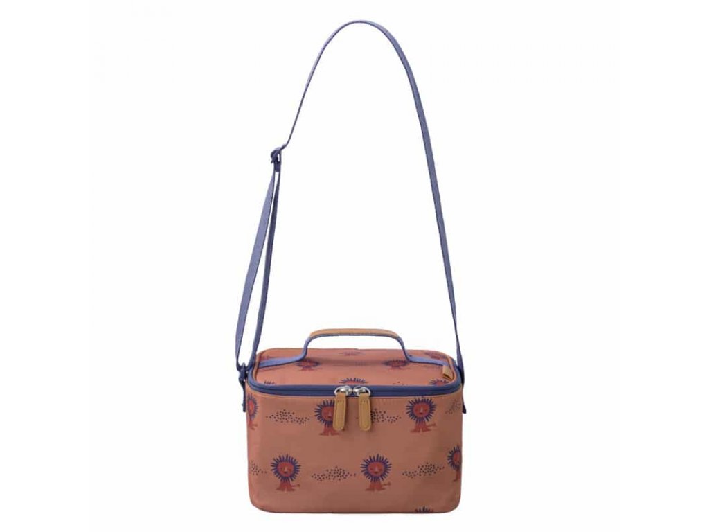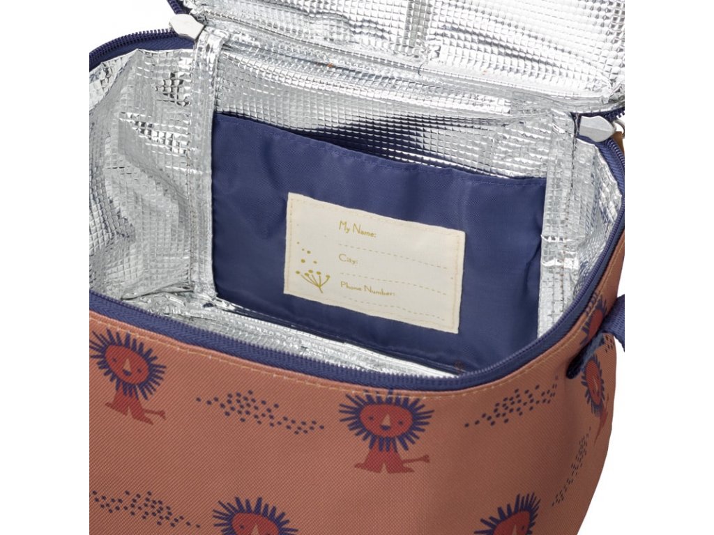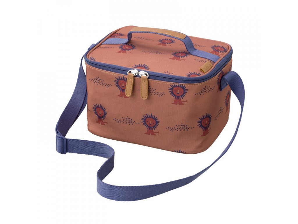 Chladiaca termotaška – veľká s popruhom cez rameno, so vzorom levíkov v horčicovej farbe.
