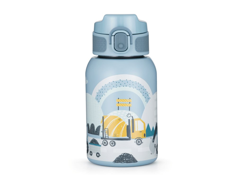 Sklopné viečko so silikónovou slamkou umožňuje jednoduché a pohodlné pitie bez rozlievania. Bezpečnostná poistka chráni pred nechceným otvorením v batohu a praktický držiak uľahčuje prenášanie aj pre malé detské ruky.