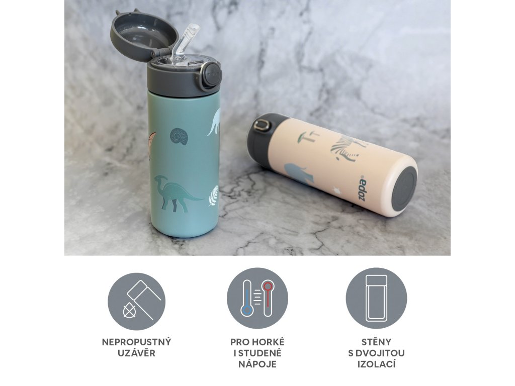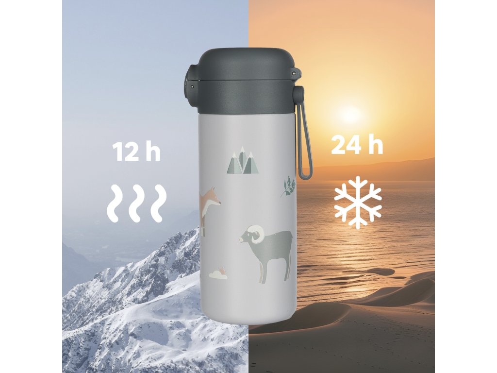 Dizajnová termoska s veselými motívmi s objemom 350 ml je vybavená spoľahlivým vzduchotesným uzáverom a dvojitou vrstvou kvalitnej nerezovej ocele, aby bol nápoj vždy v takom stave, aký ho pripravujete - horúce nápoje uchováva teplé až 12 hodín a chladné až po dobu 24 hodín.