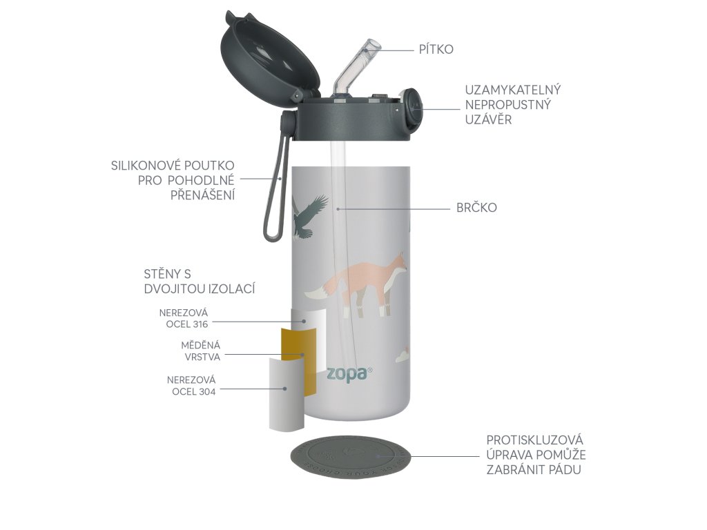 Termoska je vyrobená zo zdravotne nezávadných materiálov bez BPA, pre maximálnu bezpečnosť aj pri každodennom používaní. Termosku umývajte v ruke, nie je vhodná do umývačky riadu.