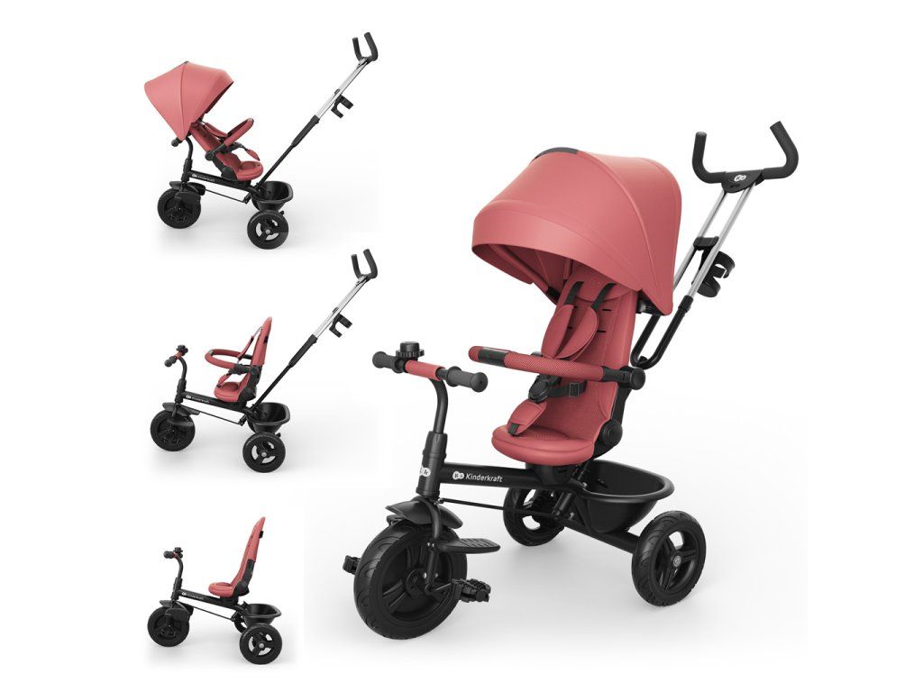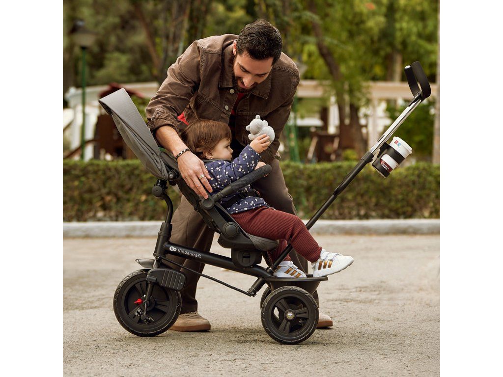 Kinderkraft ASTON 2 PLUS je praktické riešenie pre rodičov, ktorí chcú jedno vozidlo na niekoľko rokov – bez kupovania ďalších modelov s tým, ako dieťa rastie. Vďaka konštrukcii 6v1 a možnosti postupne demontovať jednotlivé prvky je možné trojkolku ľahko prispôsobiť aktuálnym potrebám dieťaťa: od pokojných prechádzok „ako s kočíkom” až po samostatné jazdy staršieho dieťaťa na trojkolesovom bicykli.
