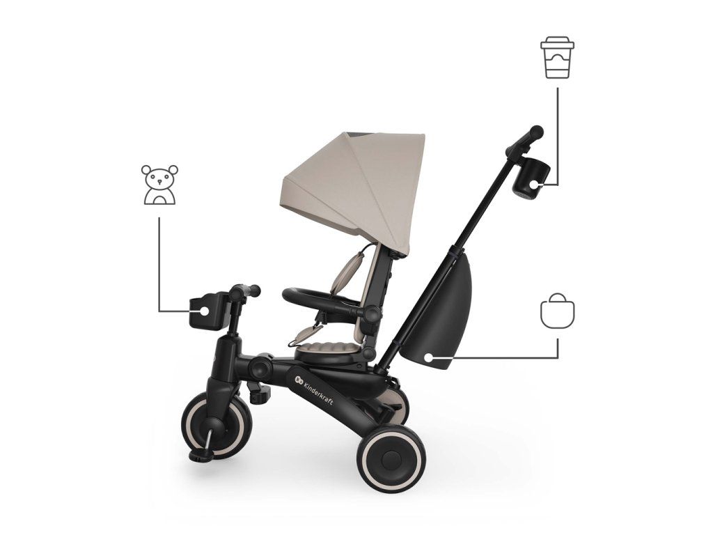 Kinderkraft JAZZ 3 kombinuje trojkolku vedenú rodičom s fázou učenia samostatnej jazdy. Vďaka 6 režimom používania sa model prispôsobuje vývoju dieťaťa - od jazdy proti smeru s kontrolou rodiča, cez samostatné šliapanie až po režim odrážadla. Trojkolka zodpovedá potrebám rodín v rôznych etapách vývoja dieťaťa.