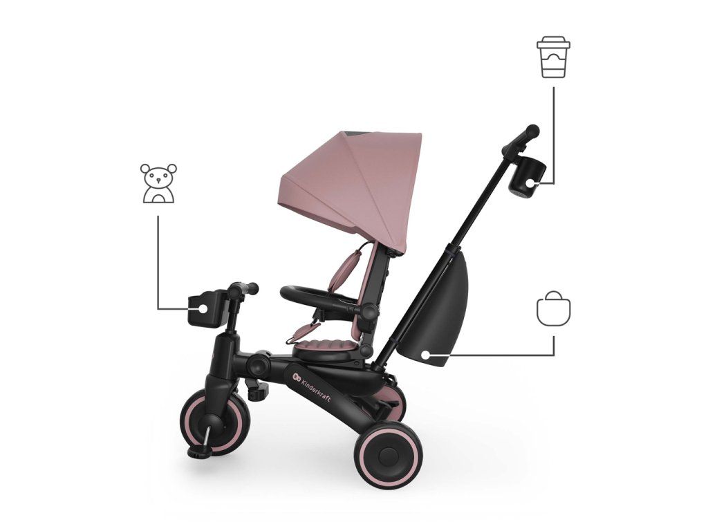 Kinderkraft JAZZ 3 kombinuje trojkolku vedenú rodičom s fázou učenia samostatnej jazdy. Vďaka 6 režimom používania sa model prispôsobuje vývoju dieťaťa - od jazdy proti smeru s kontrolou rodiča, cez samostatné šliapanie až po režim odrážadla. Trojkolka zodpovedá potrebám rodín v rôznych etapách vývoja dieťaťa.