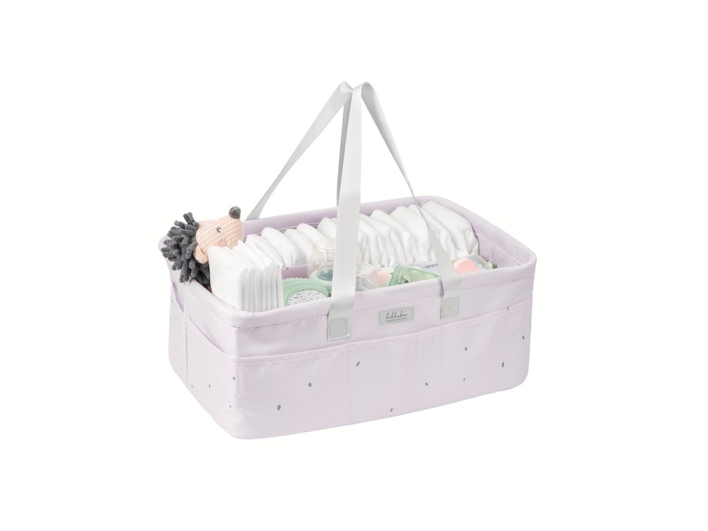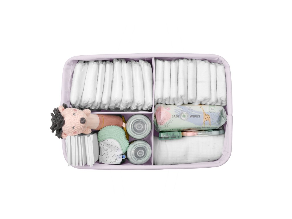 Praktický prenosný organizér v krásnom textilnom prevedení s vnútornými priehradkami vám pomôže prehľadne uložiť toaletné a prebaľovacie potreby pre vaše bábätko. Vďaka držadlám sa ľahko prenáša a môžete ho tak mať vždy po ruke kdekoľvek potrebujete.