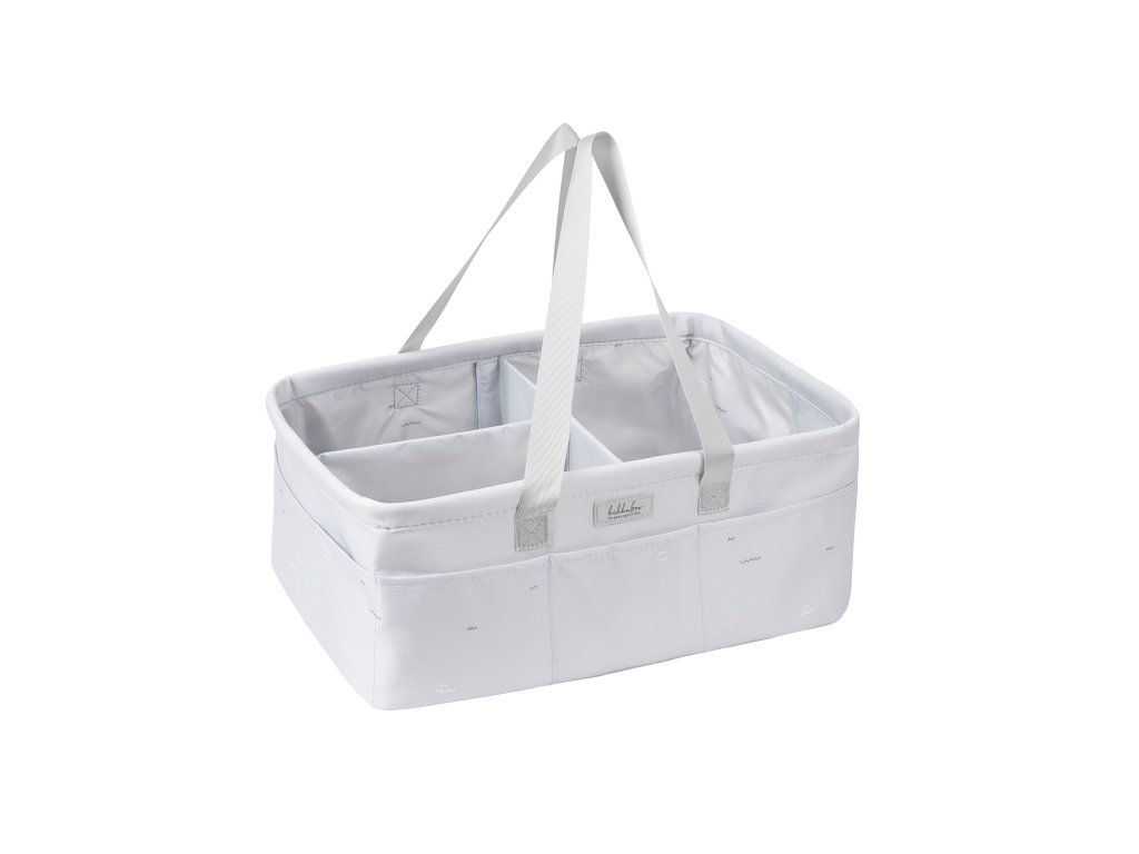 Praktický prenosný organizér v krásnom textilnom prevedení s vnútornými priehradkami vám pomôže prehľadne uložiť toaletné a prebaľovacie potreby pre vaše bábätko. Vďaka držadlám sa ľahko prenáša a môžete ho tak mať vždy po ruke kdekoľvek potrebujete.