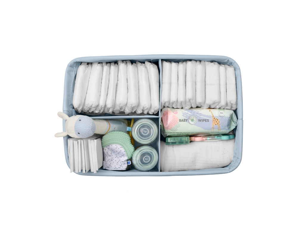 Praktický prenosný organizér v krásnom textilnom prevedení s vnútornými priehradkami vám pomôže prehľadne uložiť toaletné a prebaľovacie potreby pre vaše bábätko. Vďaka držadlám sa ľahko prenáša a môžete ho tak mať vždy po ruke kdekoľvek potrebujete.